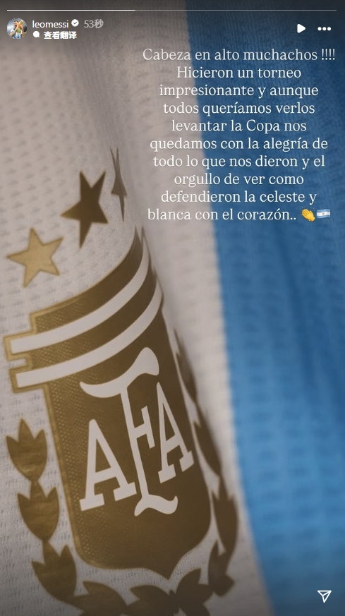 世青赛阿根廷无缘夺魁 !梅西发文鼓励:抬起头来!为你们感到自豪