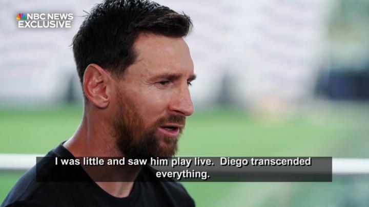 梅西接受NBC电视台采访,采访中他谈到GOAT话题,表示马拉多纳是最伟大的偶像。