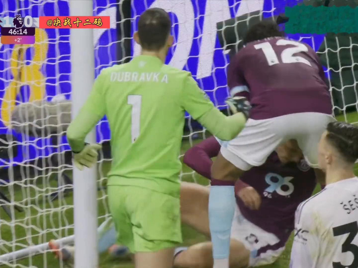 这时候海文出来晚了,再出来晚之后再过来补又有点犹豫,正好给了他一个瞄准传中的机会,最终就是运气不好,正好蹭在脚上一个抛物线,正好蹭在左脚的脚面上,这球把守门员吸引出来,但是多尔谷的挑射力量稍小,又被伯恩利队中和位在门线抢点成功。