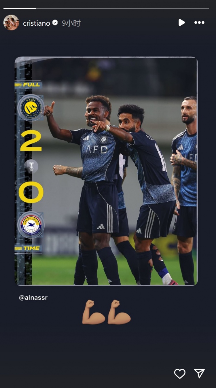 此役C罗轮休没有出战,他在社交媒体上晒出赛事 海报,足球直播无插件免费在线观看庆祝利雅得获胜 取胜。