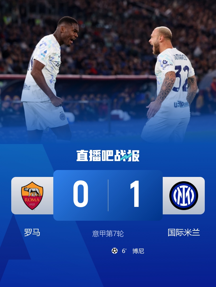意甲第7轮,国际米兰1-0客胜罗马,免费欧洲杯直播博尼制胜。