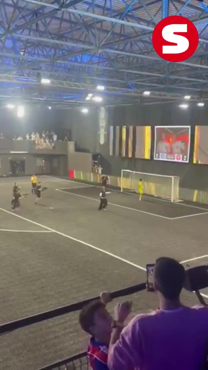亚马尔在国王职业联赛 客串打进十二码球,对着镜头飞吻庆祝